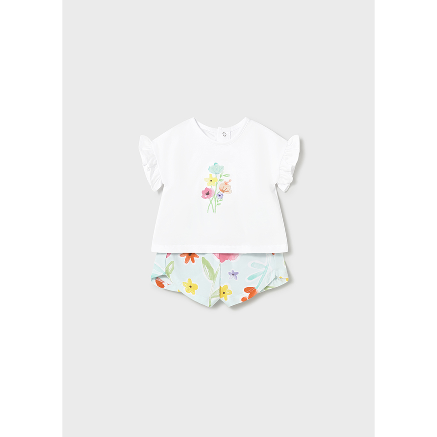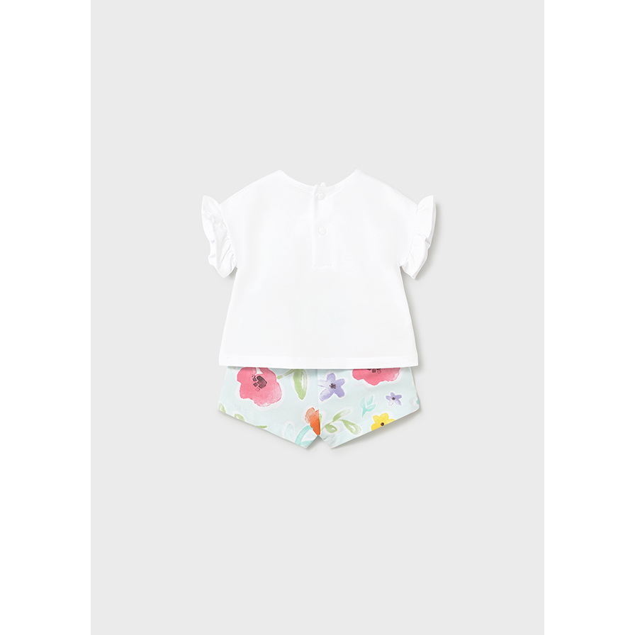 Βρεφικό σετ, σορτσάκι και μπλουζάκι με βολάν στα μανίκια, 100% Βαμβάκι