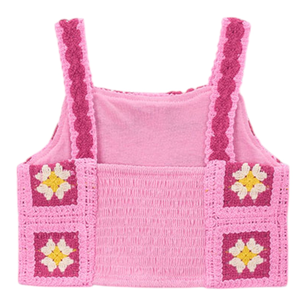 Παιδικό crop top με σφηκοφωλιά στο κάτω μέρος και σούρα στα μανίκια και στο λαιμό, 100% Βαμβάκι