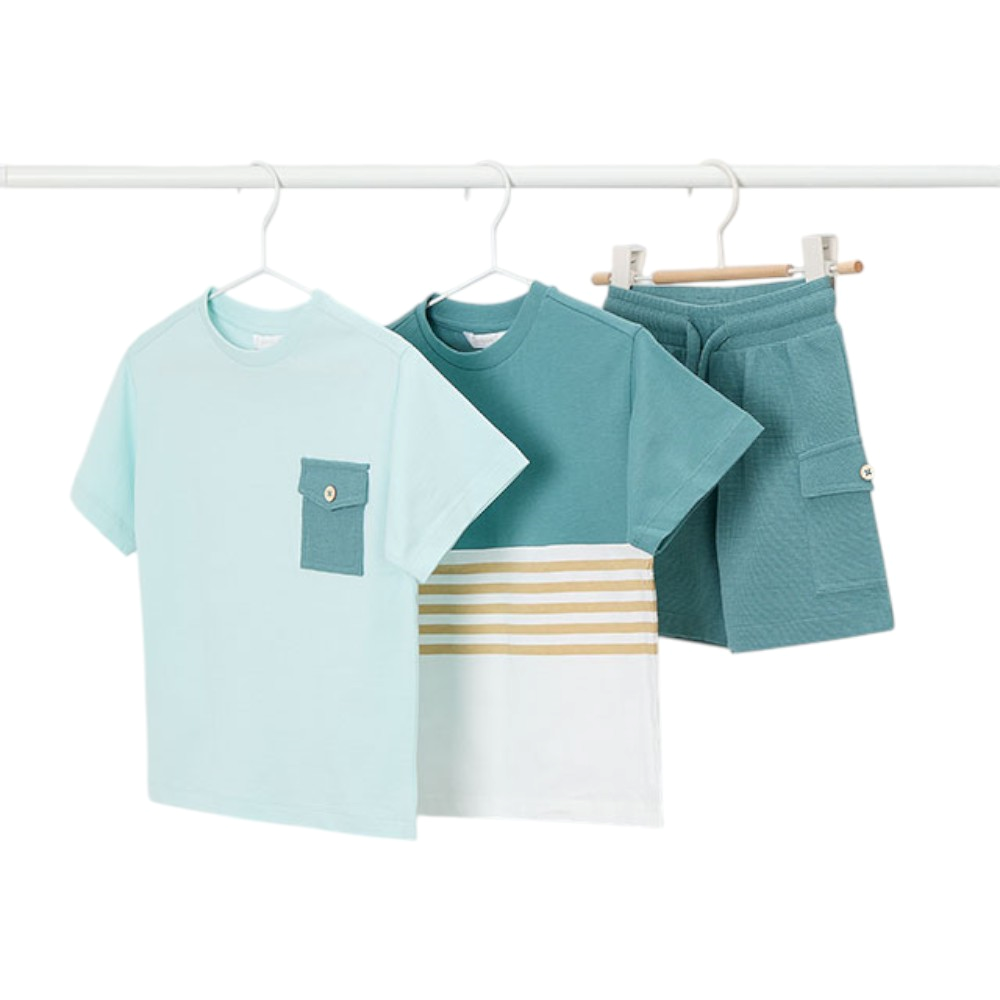 Παιδικό σετ 3 τεμαχίων με βερμούδα μακό και δύο μπλούζες με τύπωμα, 100% Βαμβάκι