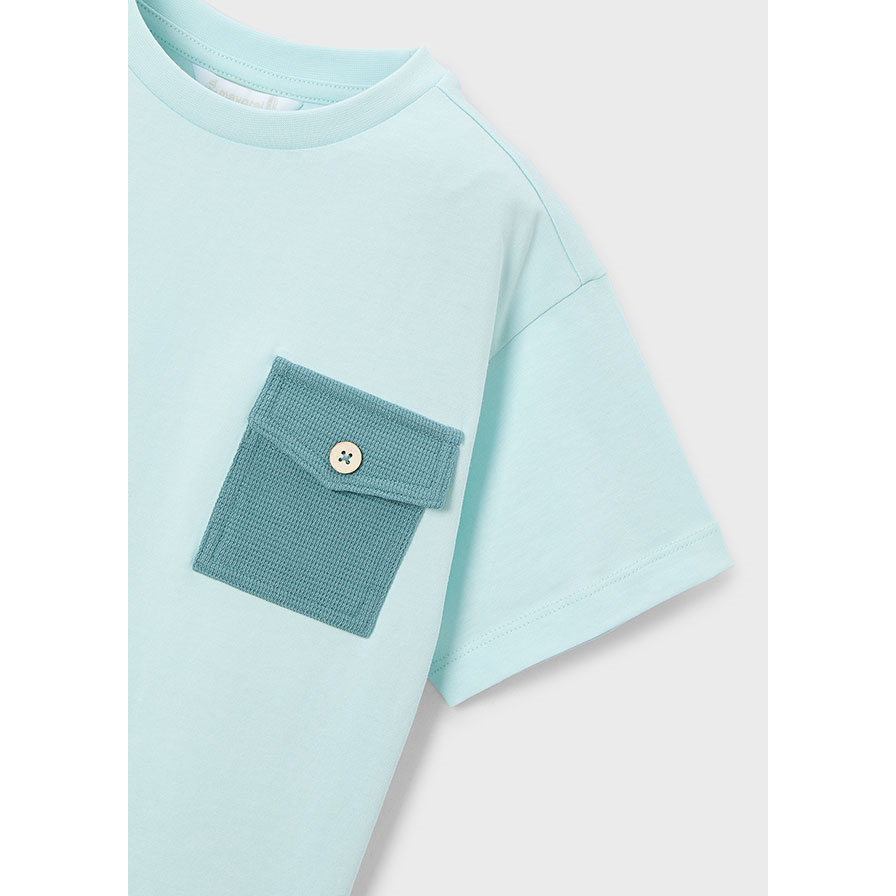 Παιδικό σετ με μακό βερμούδα και μπλούζα με τσεπάκι και σχέδιο στο τελείωμα, 100% Βαμβάκι