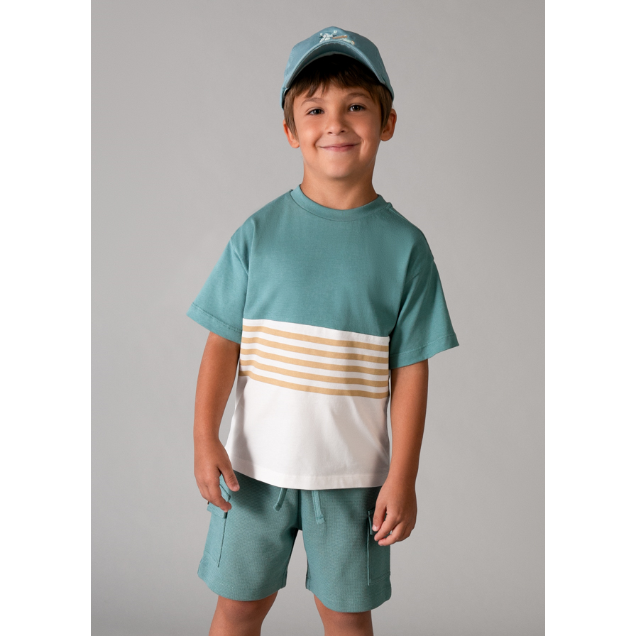Παιδικό σετ με μακό βερμούδα και κοντομάνικο μπλουζάκι με τύπωμα, 100% Βαμβάκι