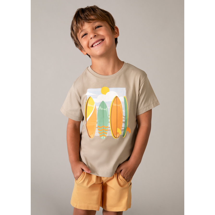 Παιδικό σετ με μακό βερμούδα και μπλουζάκι με τύπωμα, 100% Βαμβάκι