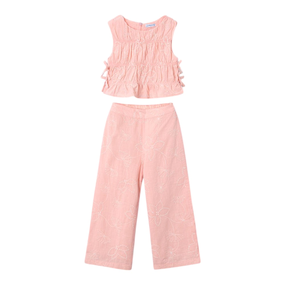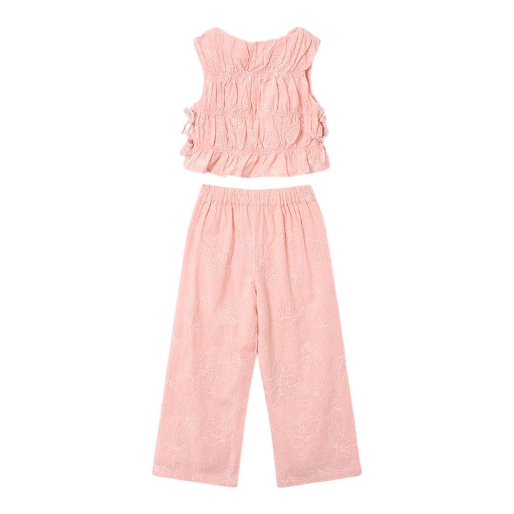 Παιδικό σετ με εμπριμέ σαλβάρι και ροζ αμάνικο μπλουζάκι με τύπωμα, 95% Βαμβάκι, 5% Ελαστάνη, 100% Βαμβάκι