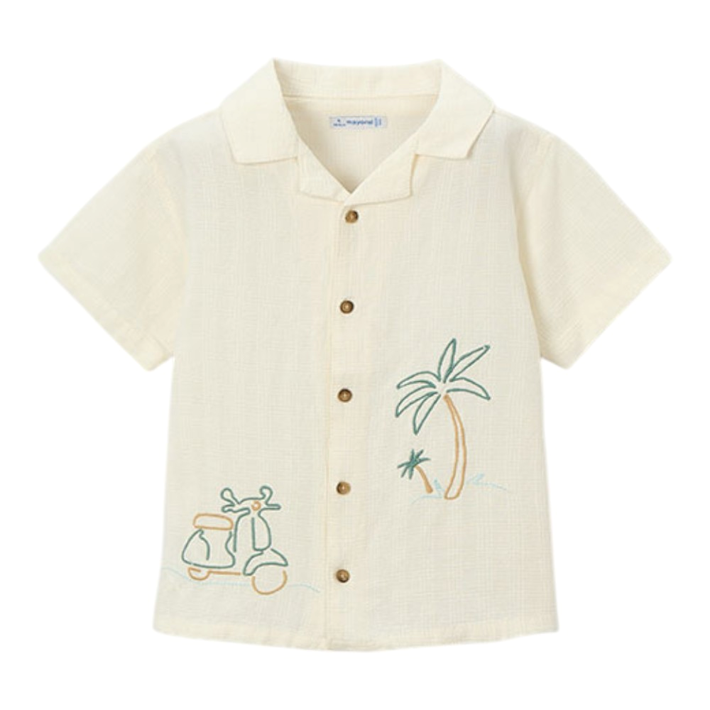 Παιδικό κοντομάνικο εμπριμέ πουκάμισο, με τύπου ξύλινα κουμπιά, 100% Βαμβάκι