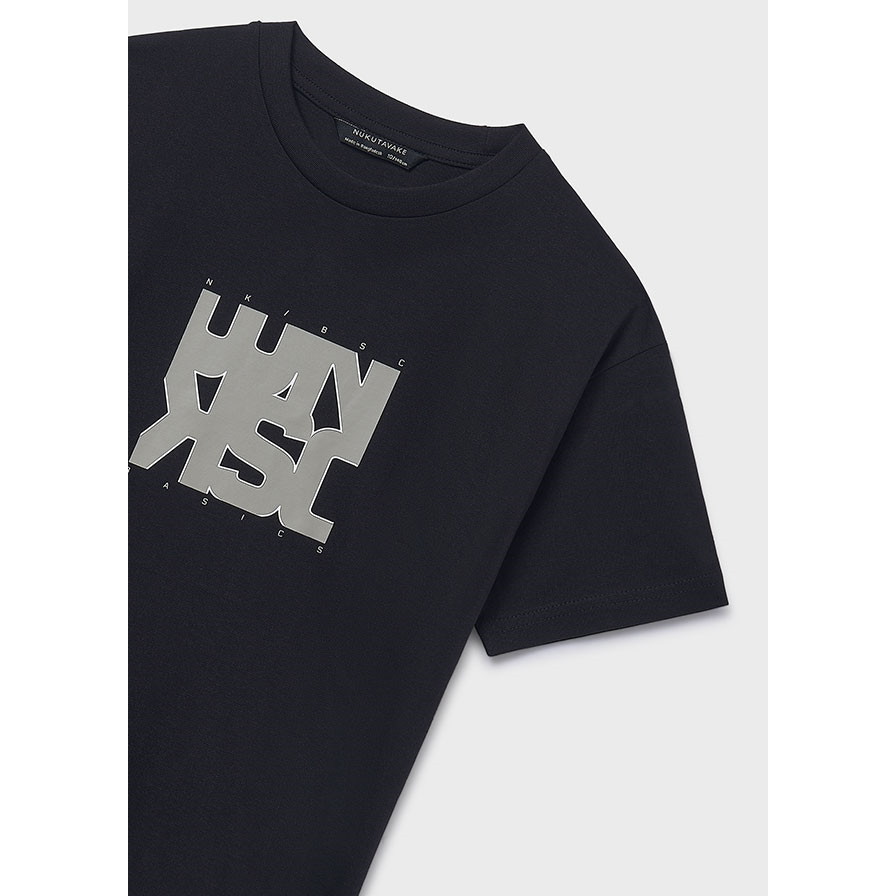 Κοντομάνικο βαμβακερό μπλουζάκι με μαύρο τύπωμα, 100% Βαμβάκι