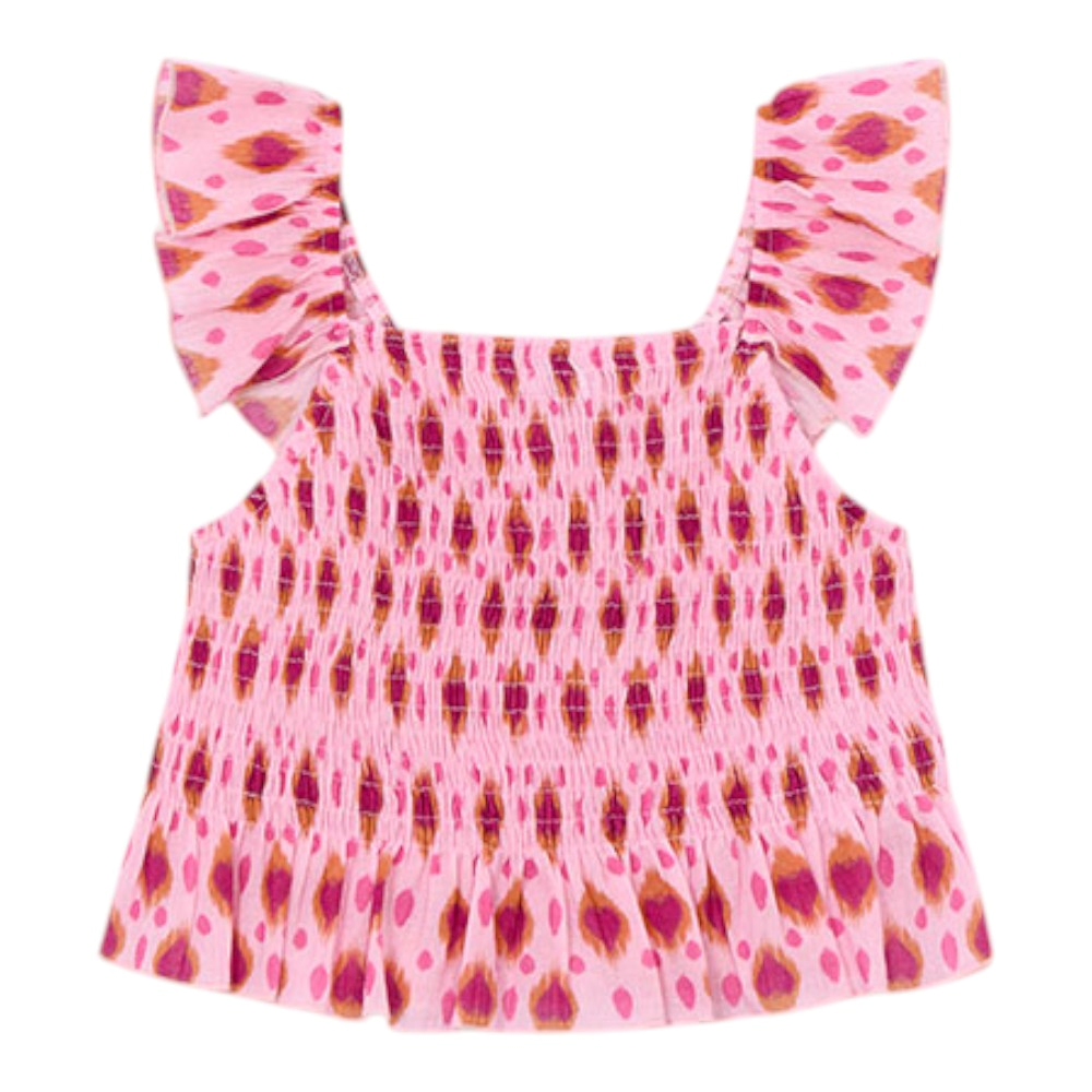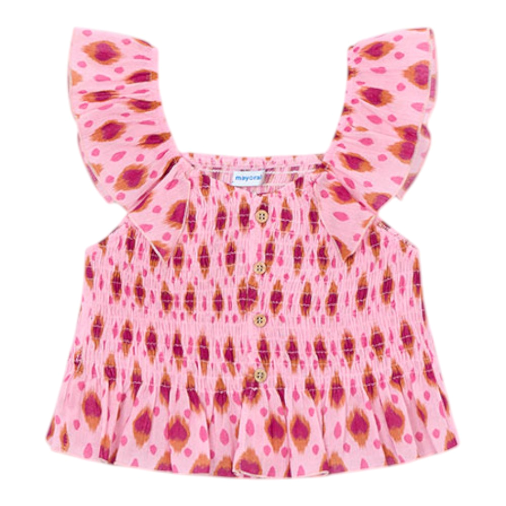 Παιδικό crop top με σφηκοφωλιά στο κάτω μέρος και σούρα στα μανίκια και στο λαιμό, 100% Βαμβάκι