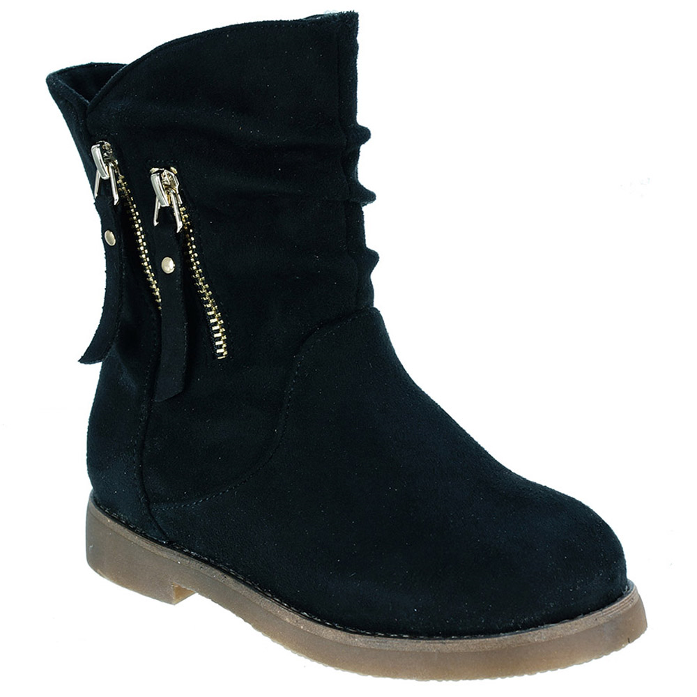 Παιδικό μποτάκι suede με glitter λεπτομέρειες στο πλάι. Κατασκευασμένο από δέρμα και συνθετικό δέρμα εξωτερικά και με υφασμάτινη επένδυση εσωτερικά. Διαθέτει ελαστική αντιολισθητική σόλα και δερμάτινο ανατομικό πάτο.