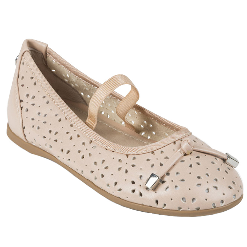 Εφηβική μπαλαρίνα με περλίτσες του ισπανικού οίκου Mayoral. Κατασκευασμένη από συνθετικό δέρμα εξωτερικά και δέρμα εσωτερικά. Διαθέτει δερμάτινο πάτο και ελαστική αντιολισθητική σόλα.