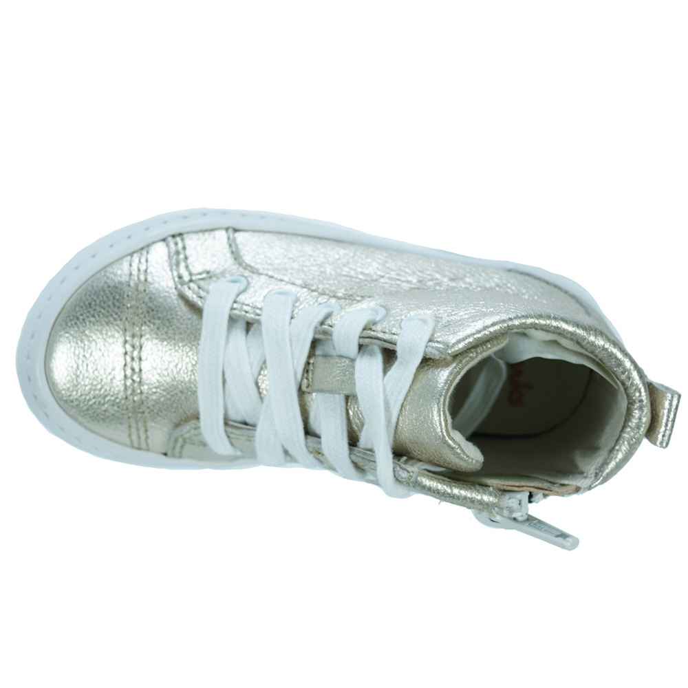 Παιδικό μποτάκι με κορδόνια και φερμουάρ του οίκου Renato Garini. Κατασκευασμένο από συνθετικό δέρμα εξωτερικά και με υφασμάτινη επένδυση εσωτερικά. Διαθέτει ελαστική αντιολισθητική σόλα.