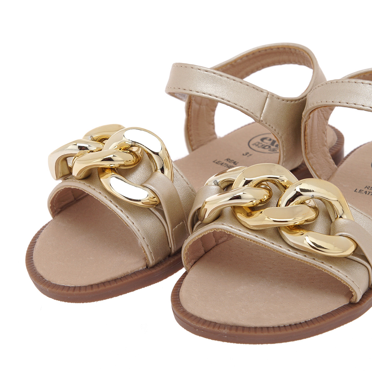Παιδικό σανδάλι με velcro για πιο καλή εφαρμογή. Κατασκευασμένο από δέρμα εξωτερικά και εσωτερικά. Διαθέτει ελαστική αντιολισθητική σόλα και δερμάτινο πάτο.