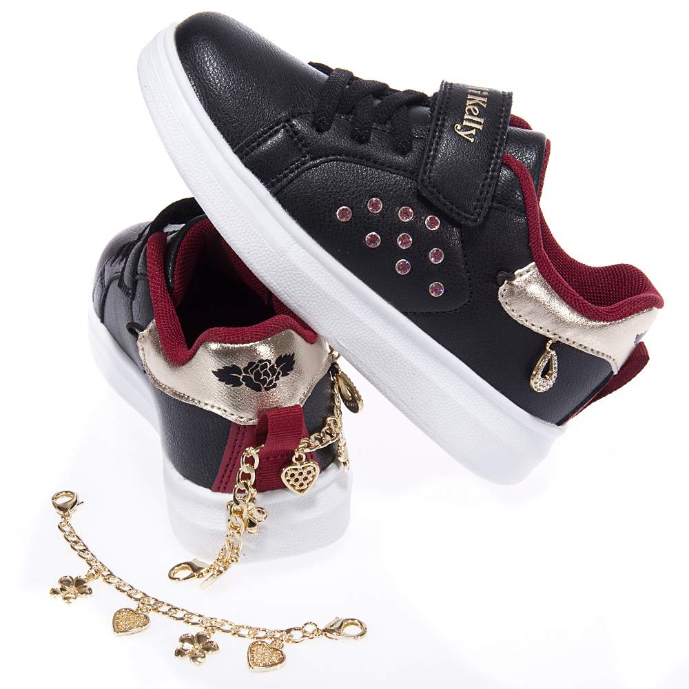 Παιδικά sneakers με ιριδίζον λεπτομέρειες και γκλίτερς του οίκου Exe. Κατασκευασμένα από συνθετικό δέρμα εξωτερικά και με υφασμάτινη επένδυση εσωτερικά. Διαθέτουν ελαστική αντιολισθητική σόλα.