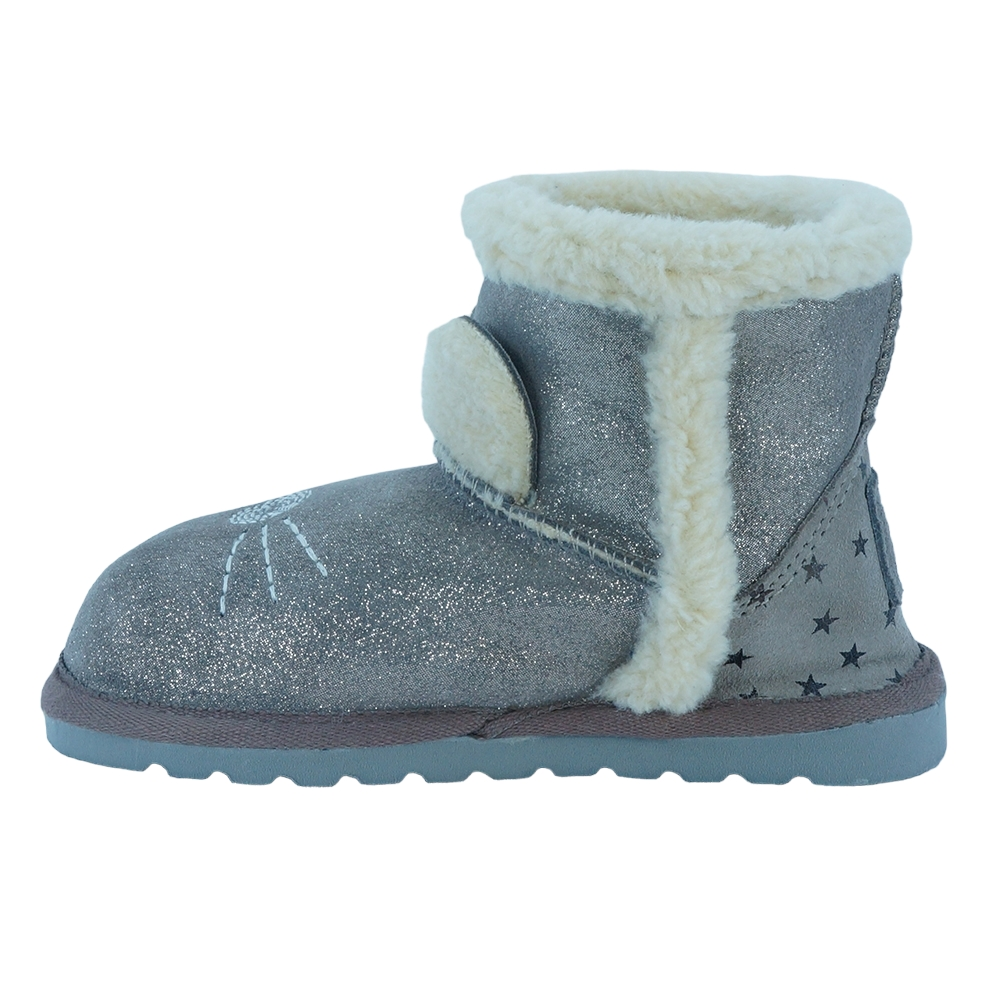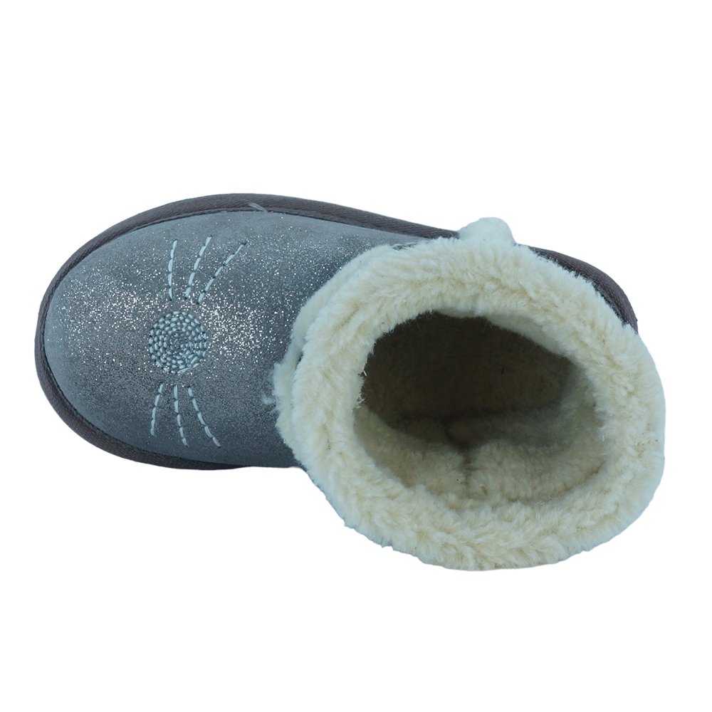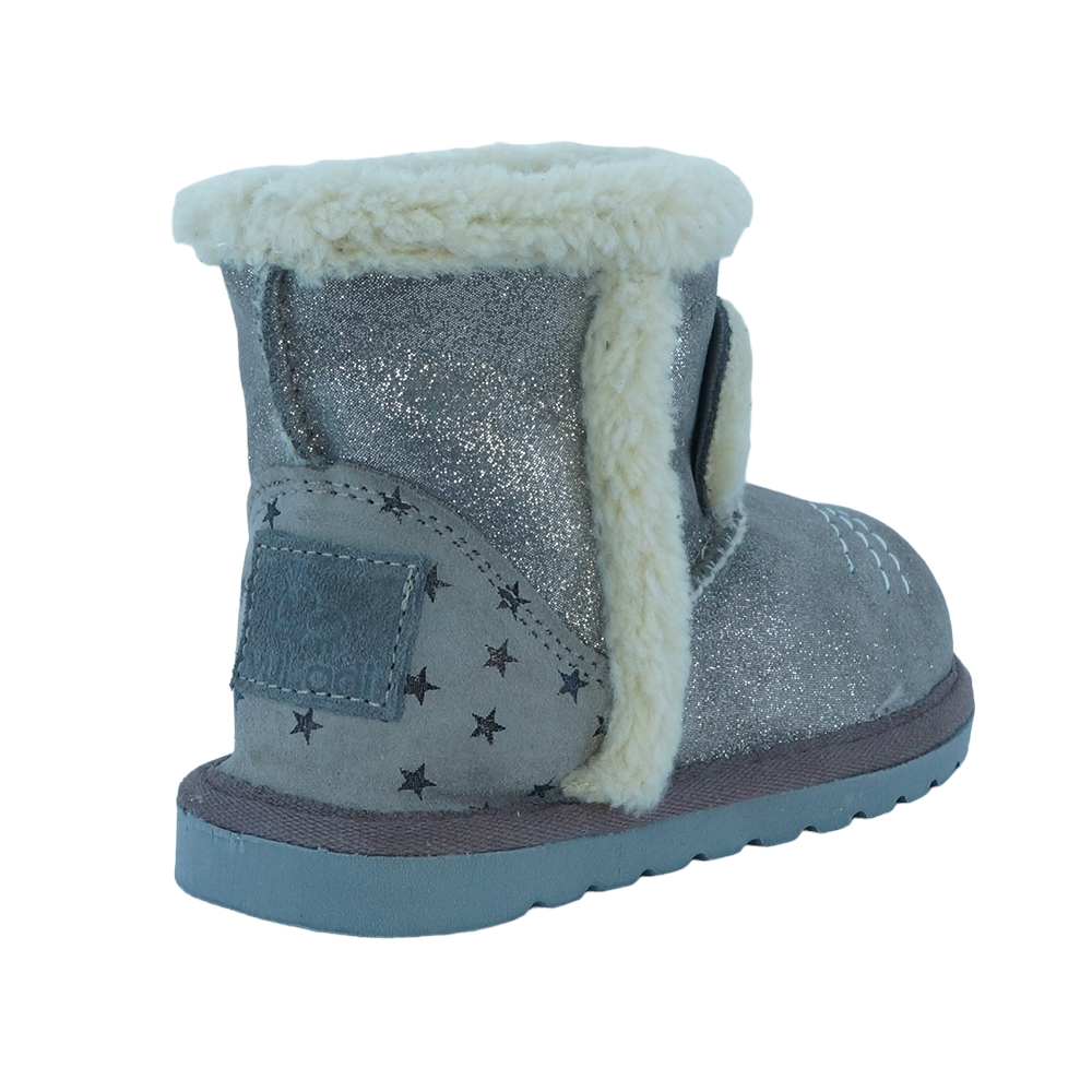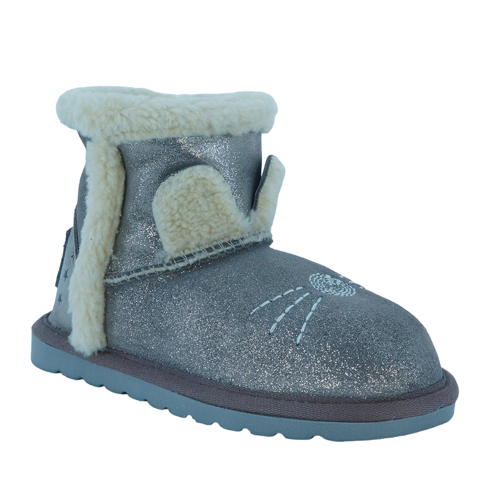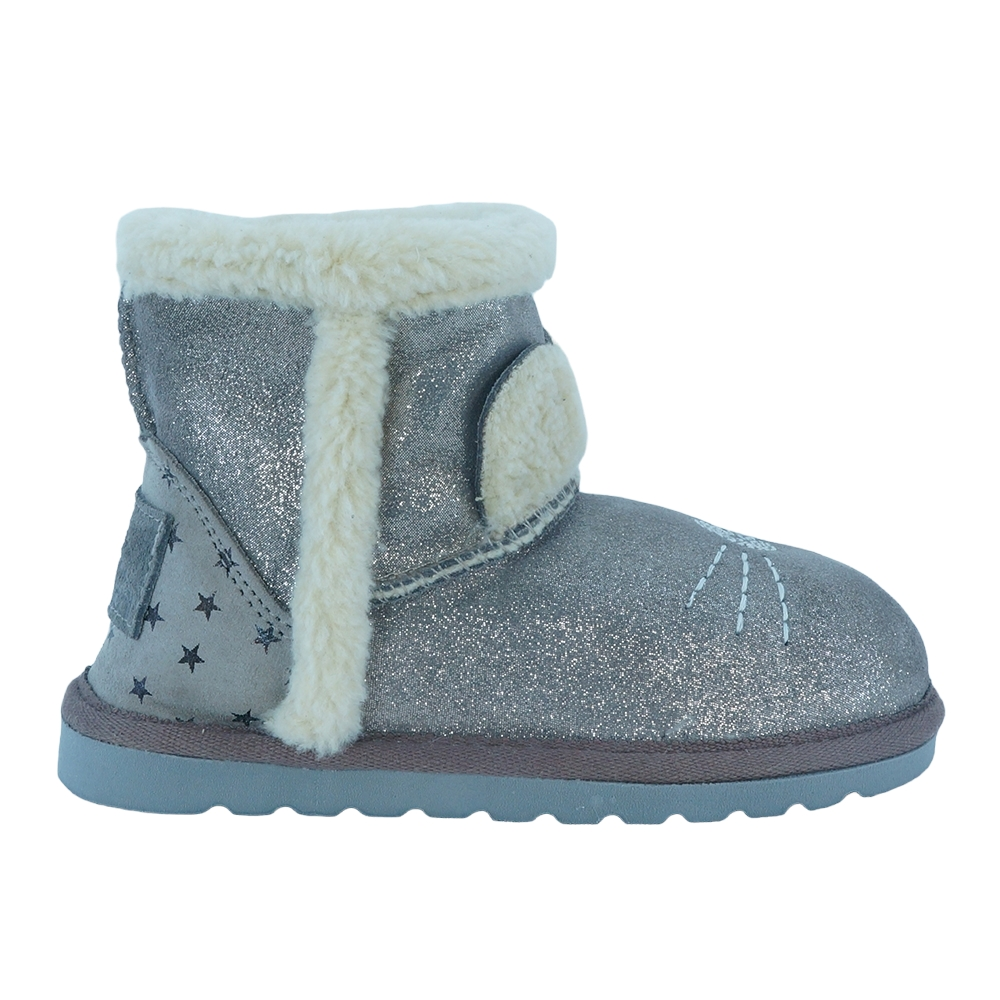 Παιδικό μποτάκι με γκλιτερς, του ισπανικού οίκου Vul ladi. Κατασκευασμένο από δέρμα εξωτερικά και με γούνινη επένδυση εσωτερικά. Διαθέτει ελαστική αντιολισθητική σόλα.