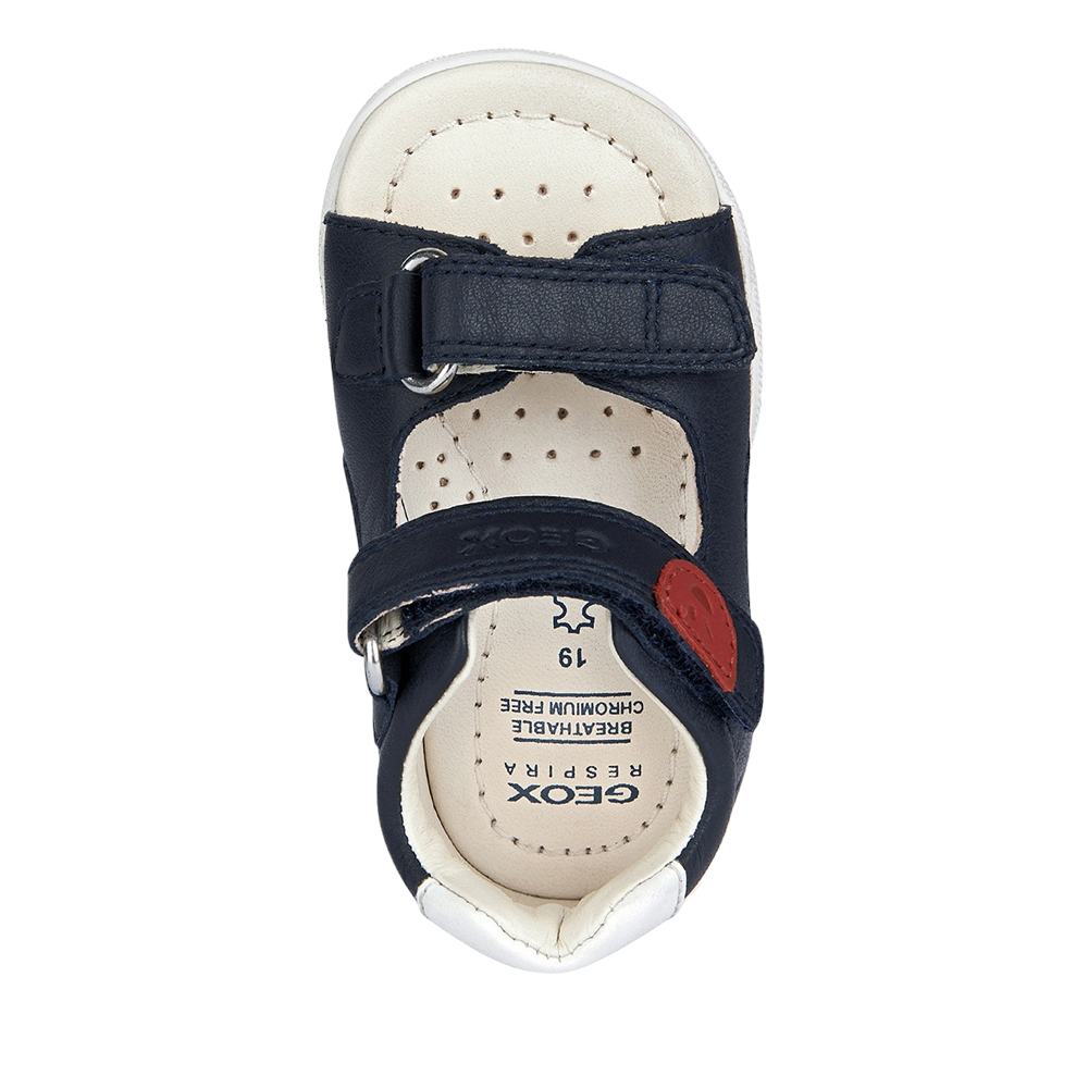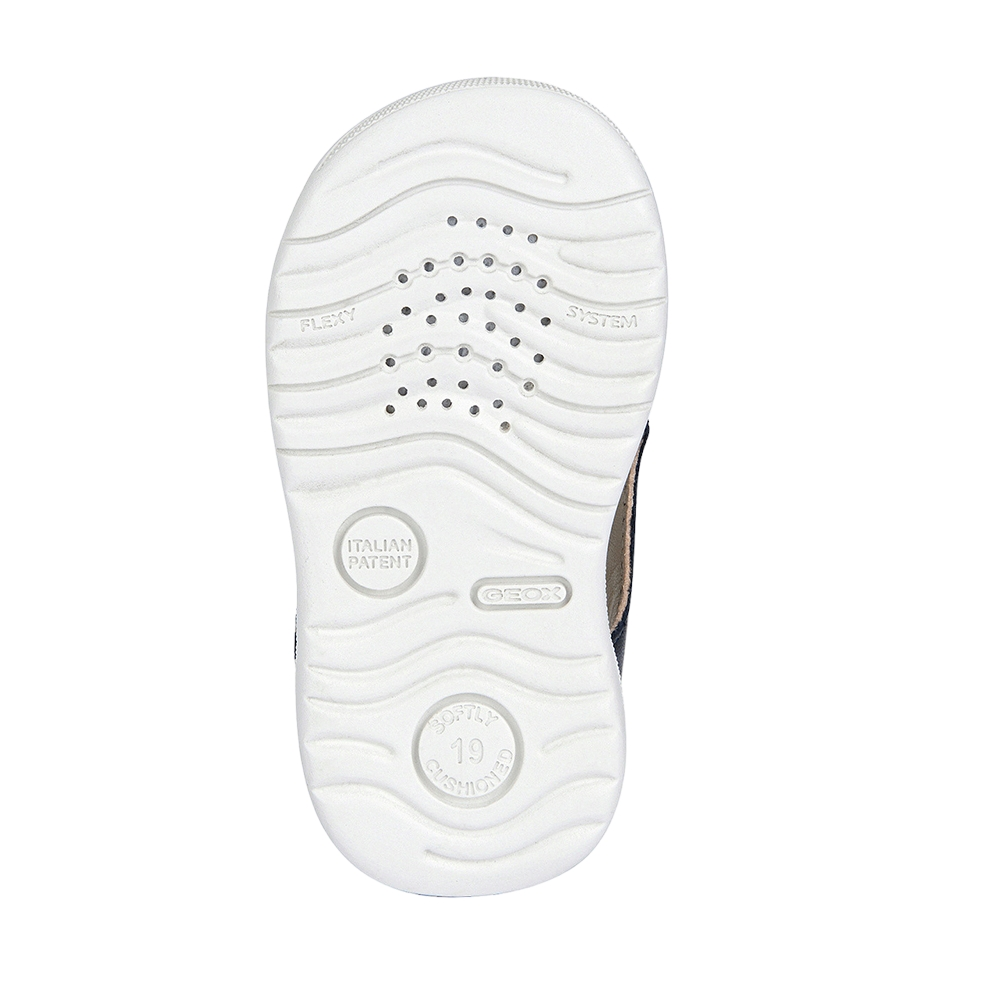 Βρεφικό ανατομικό παπουτσοπέδιλο με velcro (χριτς-χρατς) και μουσταρδί λεπτομέρειες του ιταλικού οίκου Geox. Κατασκευασμένο από δέρμα εξωτερικά και εσωτερικά. Διαθέτει δερμάτινο πάτο και ελαστική αντιολισθητική σόλα.