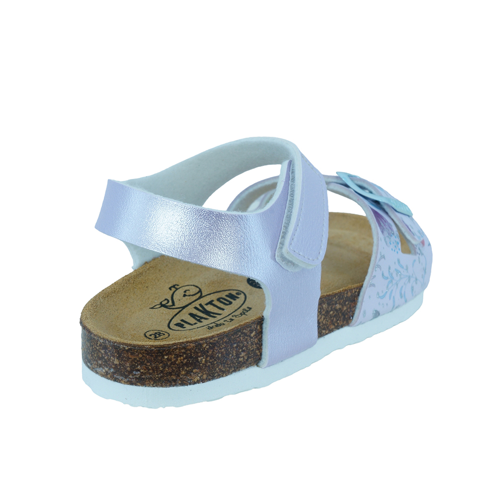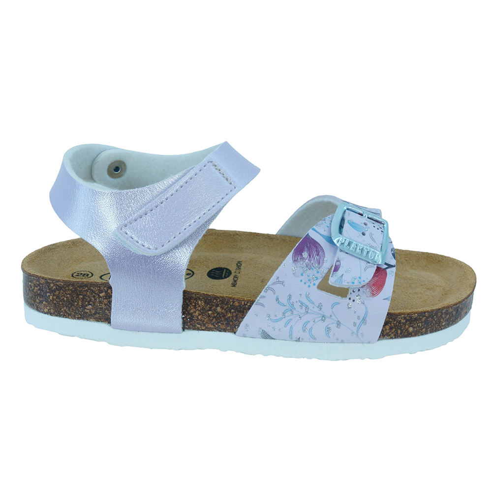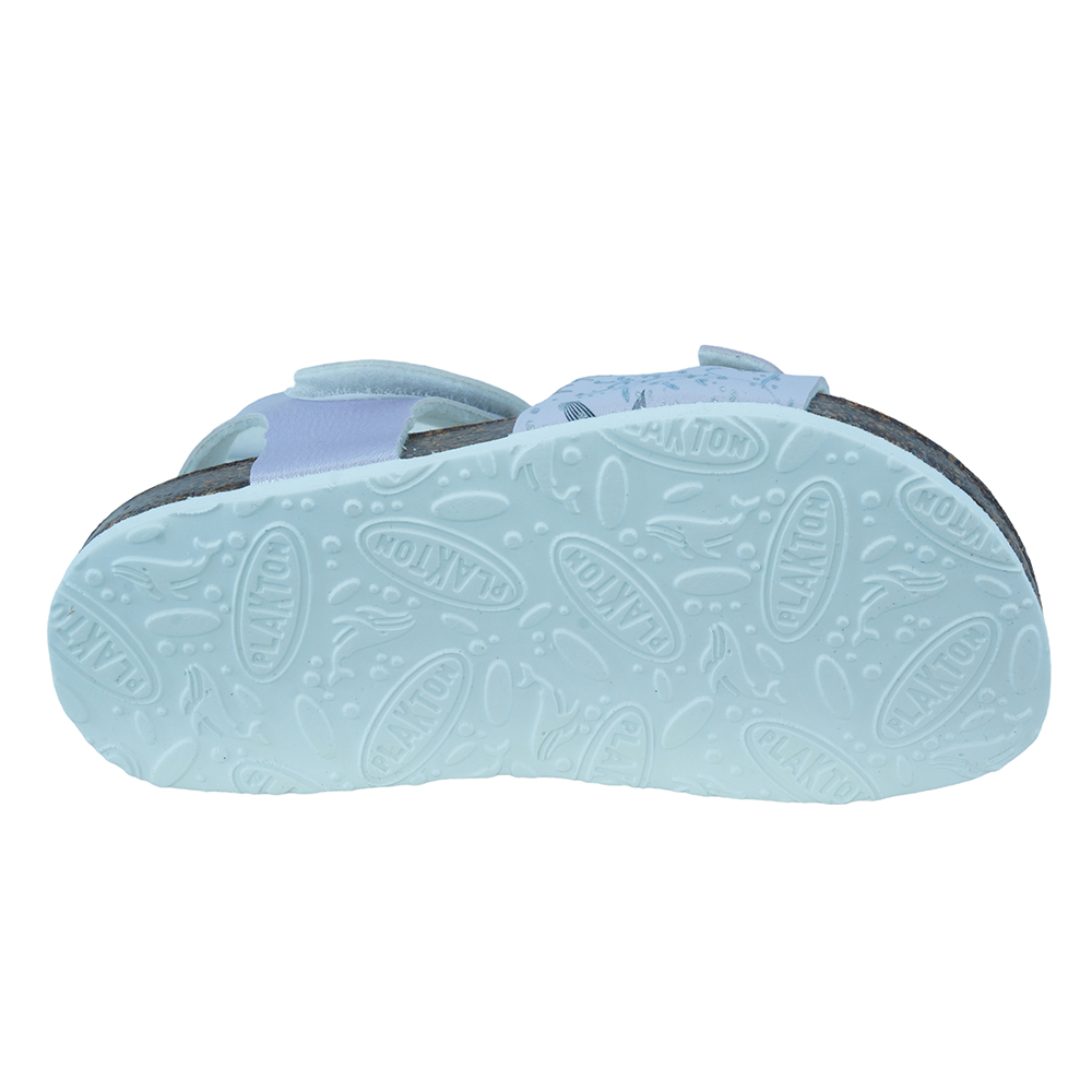 Βρεφικό ανατομικό πέδιλο με δύο velcro (χρατς) του ισπανικού οίκου Plakton. Κατασκευασμένο από συνθετικό δέρμα εξωτερικά και καμβά εσωτερικά. Διαθέτει ελαστική αντιολισθητική σόλα και δερμάτινο ανατομικό πάτο σε σχήμα σκάφης.