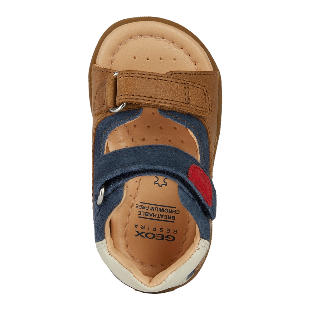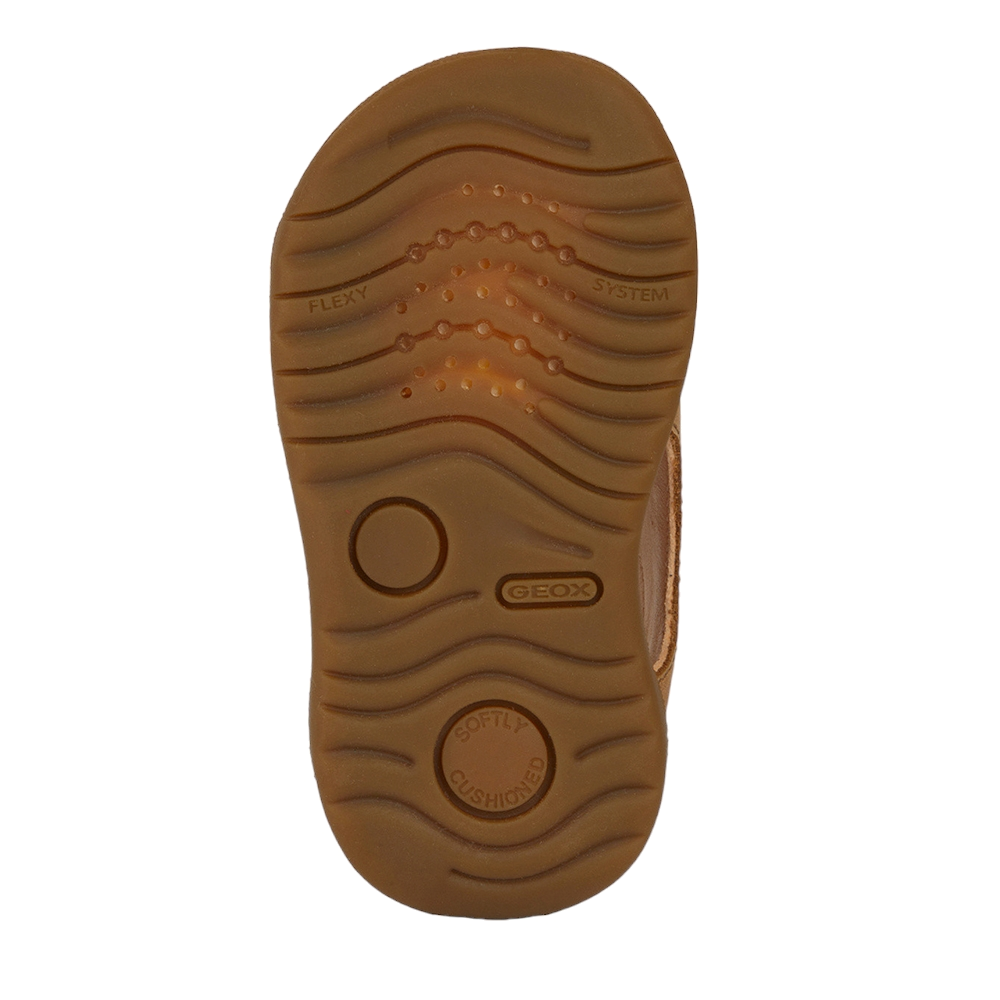 Βρεφικό ανατομικό παπουτσοπέδιλο με velcro (χριτς-χρατς) και μουσταρδί λεπτομέρειες του ιταλικού οίκου Geox. Κατασκευασμένο από δέρμα εξωτερικά και εσωτερικά. Διαθέτει δερμάτινο πάτο και ελαστική αντιολισθητική σόλα.