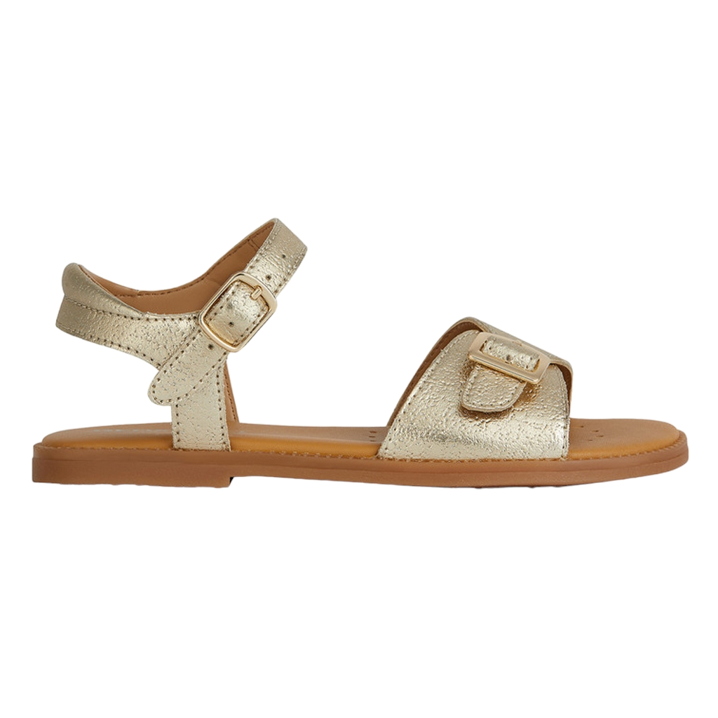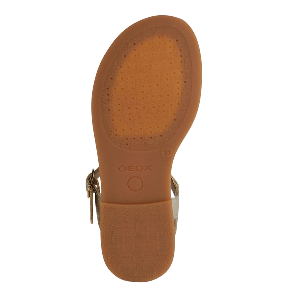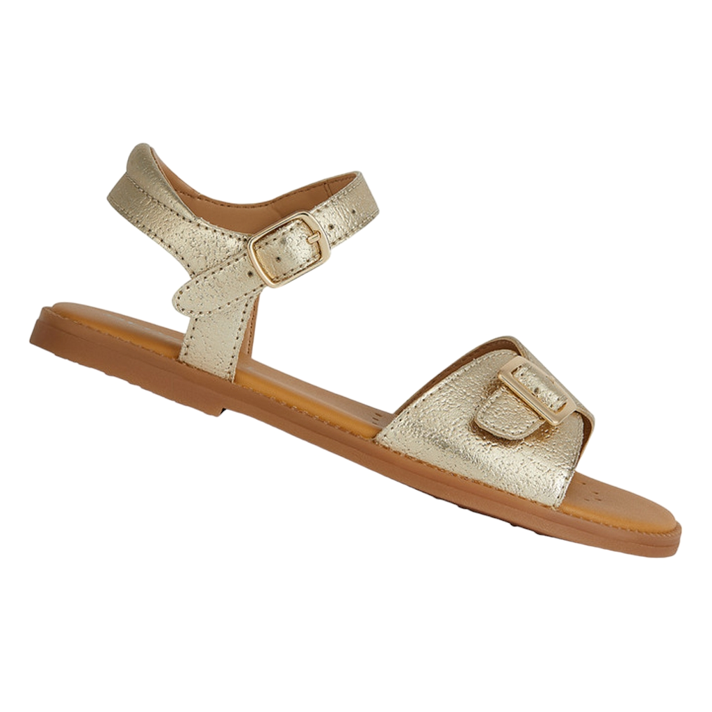 Παιδικό πέδιλο διακοσμημένο με χρυσή αλυσίδα του οίκου Exe. Κατασκευασμένο από συνθετικό δέρμα εξωτερικά και συνθετικό εσωτερικά. Διαθέτει ελαστική αντιολισθητική σόλα και δερμάτινο πάτο.