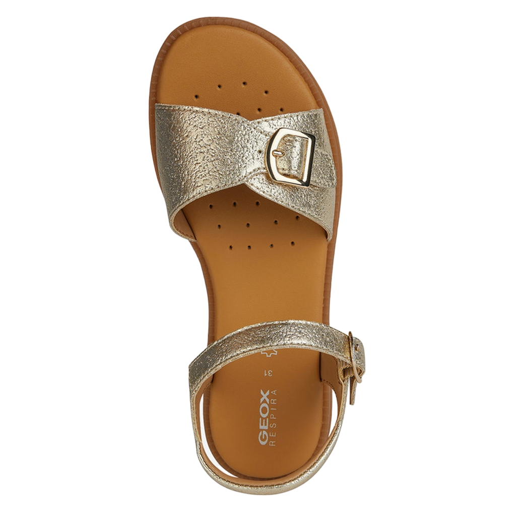 Παιδικό σανδάλι με ιριδίζοντα και με glitter λουράκια του οίκου Su Sandals. Κατασκευασμένο από δέρμα εξωτερικά και εσωτερικά. Διαθέτει δερμάτινο πάτο και ελαστική αντιολισθητική σόλα.