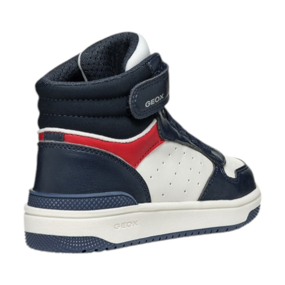 Βρεφικό μποτάκι με velcro (χρατς) και κόκκινες λεπτομέρειες, του ιταλικού οίκου Geox. Κατασκευασμένο από δέρμα και συνθετικό εξωτερικά και με υφασμάτινη επένδυση εσωτερικά. Διαθέτει δερμάτινο πάτο και ελαστική αντιολισθητική σόλα.