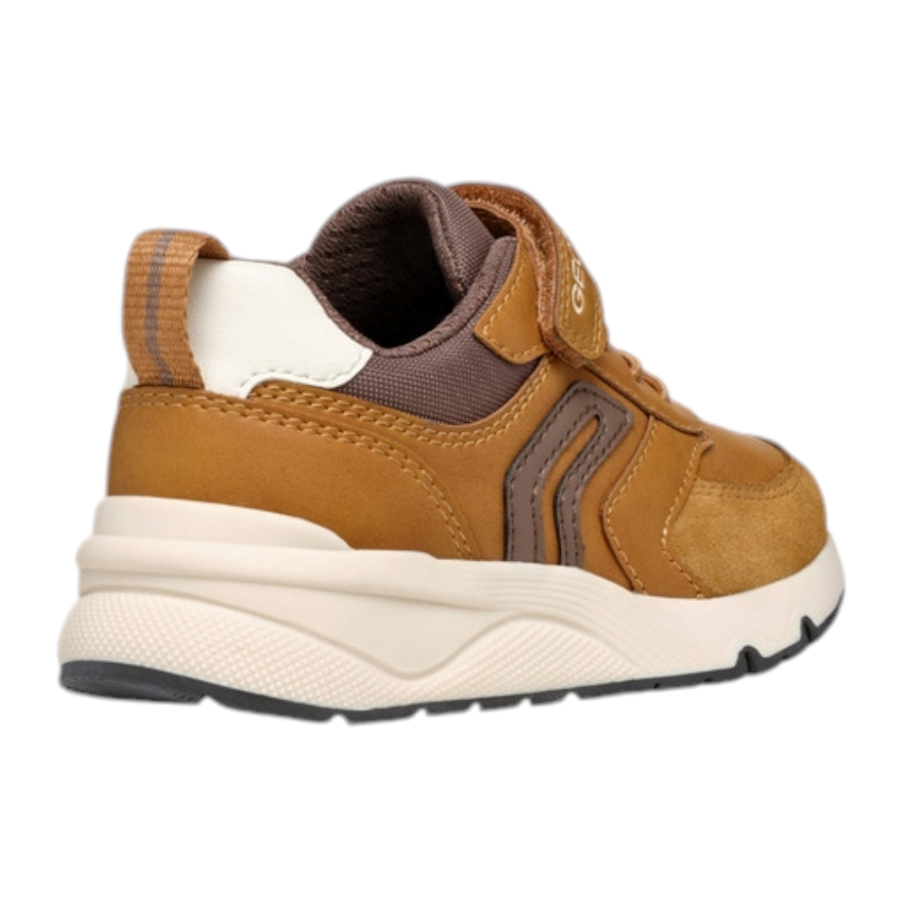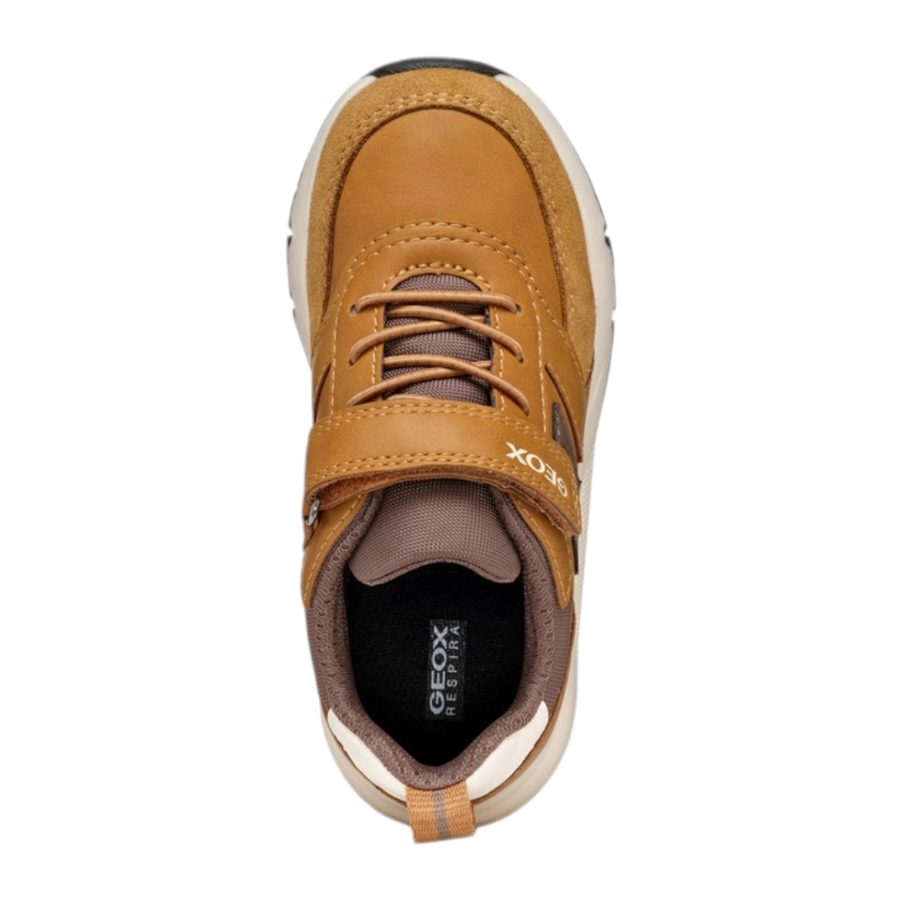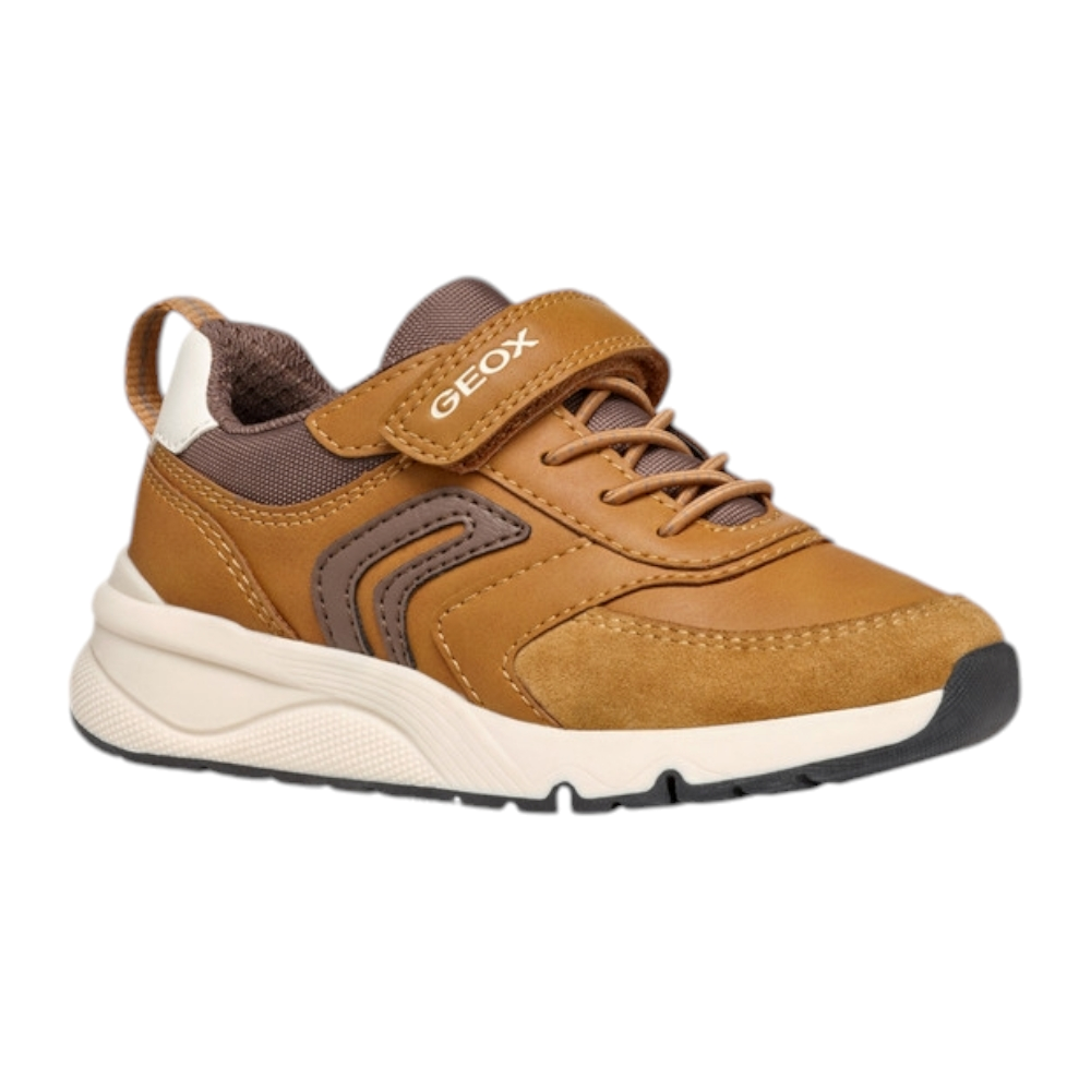 Παιδικό casual με velcro (χρατς) και ελαστικά κορδόνια του ιταλικού οίκου Geox. Κατασκευασμένο από συνθετικό δέρμα και ύφασμα(στη γλώσσα του παπουτσιού) εξωτερικά και με υφασμάτινη επένδυση εσωτερικά. Διαθέτει ελαστική αντιολισθητική σόλα.