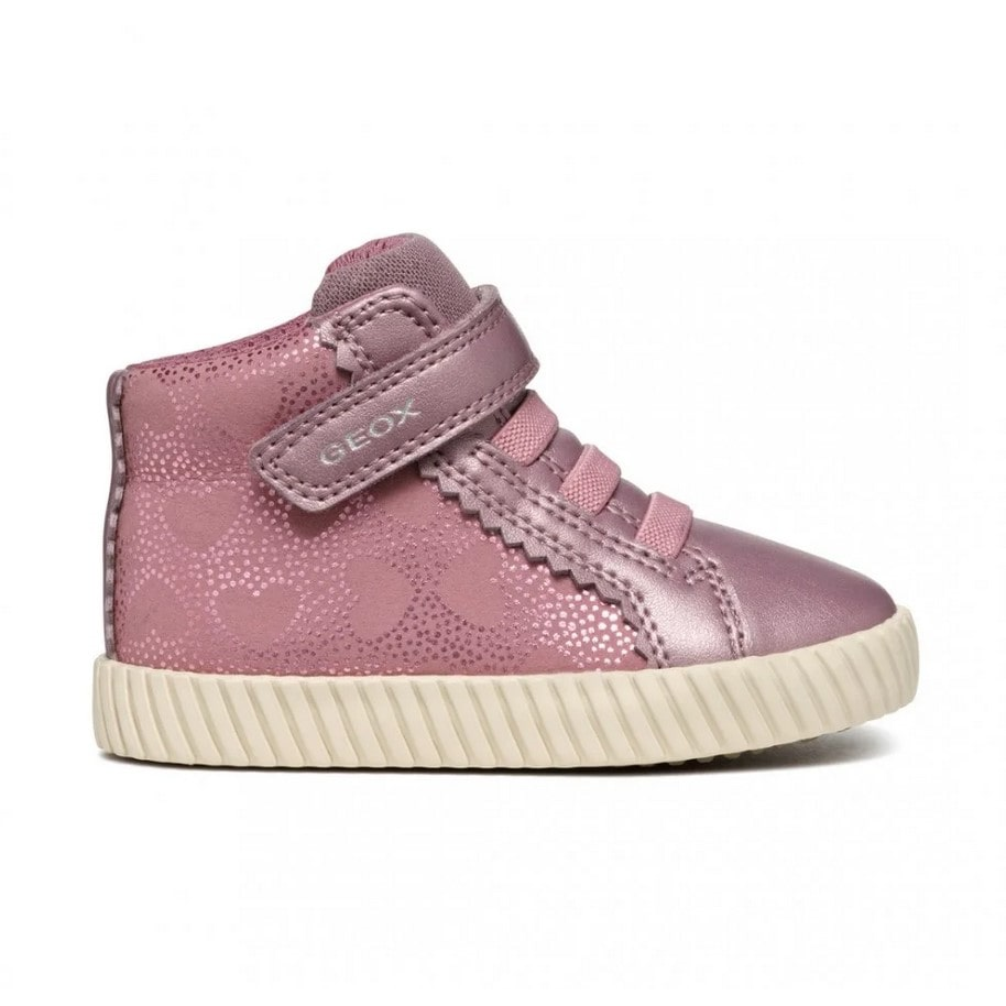 Παιδικό μποτάκι με σχέδιο μπαλόνια, του ιταλικού οίκου Geox. Κατασκευασμένο από δέρμα και συνθετικό δέρμα εξωτερικά και με καμβά εσωτερικά. Διαθέτει ελαστική αντιολισθητική σόλα και κλείνει με κορδόνια και φερμουάρ στο πλάι.