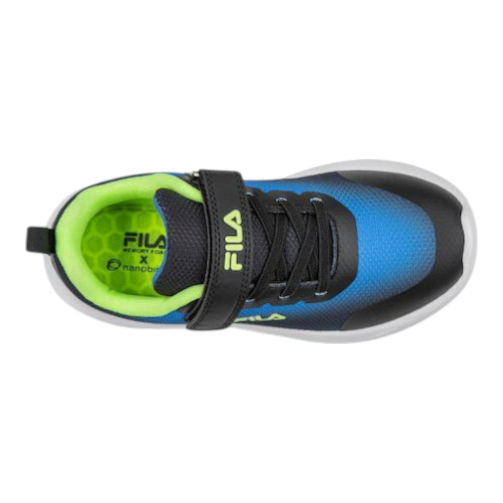 Παιδικό sneaker με ελαστικά κορδόνια και velcro (χρατς), του οίκου Fila. Κατασκευασμένο από συνθετικό εξωτερικά και με υφασμάτινη επένδυση εσωτερικά. Διαθέτει ελαστική αντιολισθητική σόλα και memory foam πάτο.